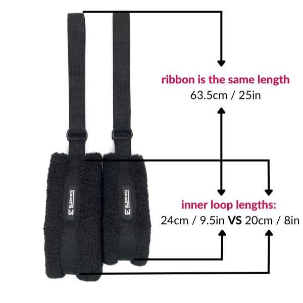 ELEMENTS Pilates Fuzzies are cushiony and thick, but soft on your leg and foot providing you with the support and comfort you need when hanging upside down. The outer material is high-quality faux fur. They can be used around arms too.